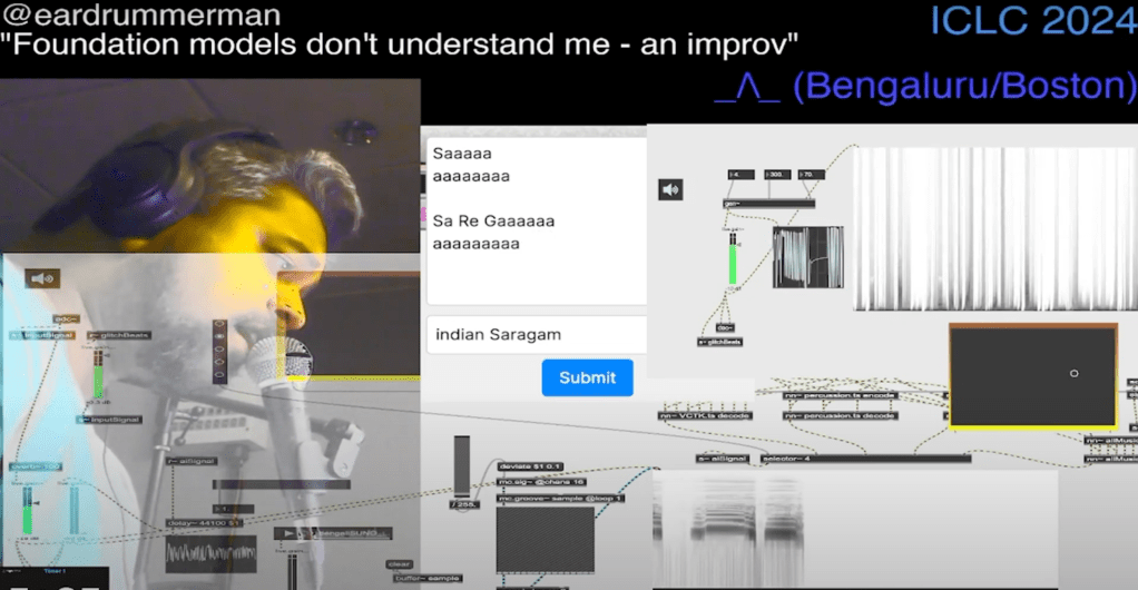 - Possibilities of live performance when a human musician reacts, interacts and remixes AI generated music showcasing the shifting value of creation in the age of synthetic media.